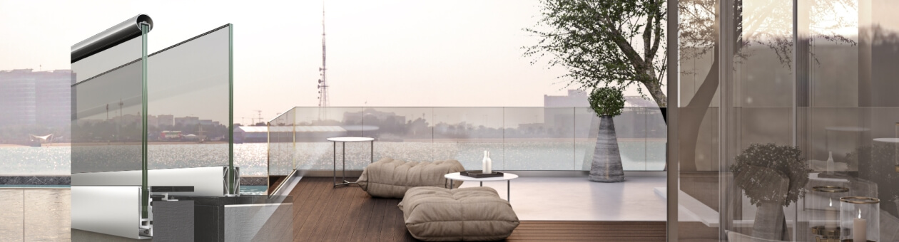 Σύστημα κάθετης στήριξης υαλοπινάκων για την κατασκευή γυάλινων κάγκελων σύγχρονης αισθητικής και κορυφαίας στιβαρότητας. Βάσεις στήριξης από τρεχούμενα προφίλ χωρίς ορθοστάτες, για ανεμπόδιστη θέα και αίσθηση πολυτέλειας.