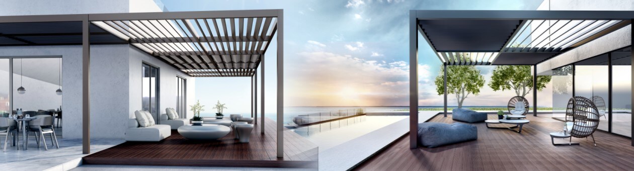 Ολοκληρωμένο σύστημα πέργκολας με σταθερές περσίδες το οποίο προσφέρει σκίαση και παράλληλα συμβάλλει στην κατακόρυφη αναβάθμιση της αισθητικής του περιβάλλοντος χώρου. Η στιβαρή και ανθεκτική κατασκευή του συστήματος διασφαλίζει μακροχρόνια αντοχή και μέγιστη ανθεκτικότητα, χωρίς την ανάγκη συντήρησης.